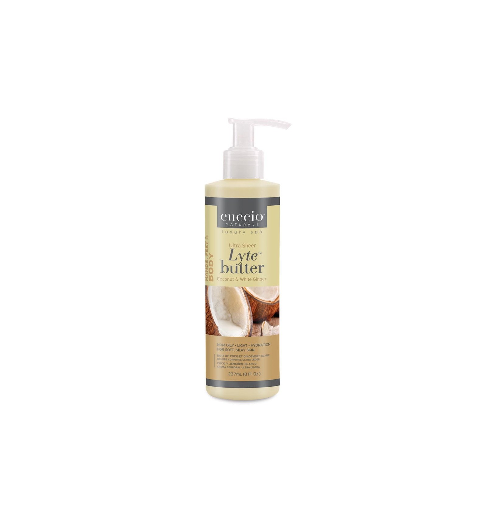 Le beurre corporel ultra léger Cuccio Naturalé a 10 fois plus de pouvoir hydratant que les lotions ! Après application le beurre ultra léger libère toutes les 2 heures ses actifs afin de nourrir et hydrater la peau pendant 24 heures. Formulé pour tout type de peau, sa texture ultra légère adoucit le corps, les mains et les pieds, il laisse la peau lisse et soyeuse. Le pouvoir du gingembre blanc et de la noix de coco combiné apporte à la peau une incroyable sensation de douceur et une fragrance délicieuse. Le beurre ultra léger Cuccio Naturalé existe en différentes senteurs. (Grenade & Figue - Vanille & Sucre - Lait & Miel - Lavande & Camomille - Noix de coco & Gingembre blanc - Citron & Aloe vera).