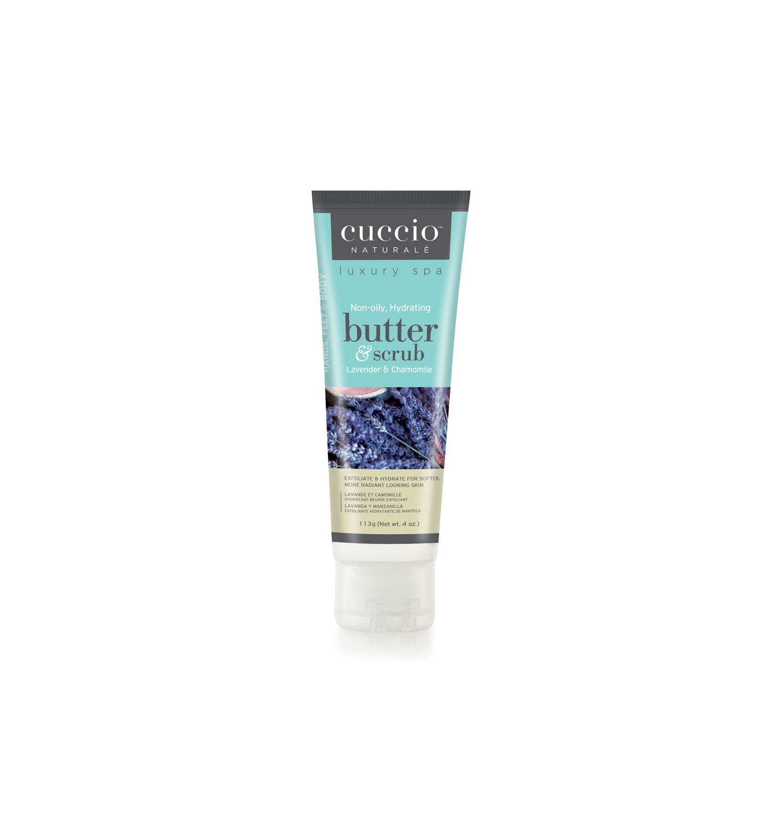 Le beurre exfoliant et hydratant Cuccio Naturalé offre un gommage luxueux et crémeux avec la finition finale des mélanges de beurre. La composition riche laisse la peau exfoliée et nourrie en douceur. Appliquer sur les mains, les pieds et le corps en mouvements circulaires pour l'exfoliation, poursuivre avec de l'eau tiède tout en rinçant. La peau est hydratée et non grasse. La lavande est rafraichissante et la camomille est parfaite pour apaiser et hydrater la peau. Le beurre exfoliant et hydratant Cuccio Naturalé existe en différentes senteurs pour varier les sensations. (Grenade & Figue - Vanille & Sucre - Lait & Miel - Lavande & Camomille - Noix de coco & Gingembre blanc - Citron & Aloe vera).