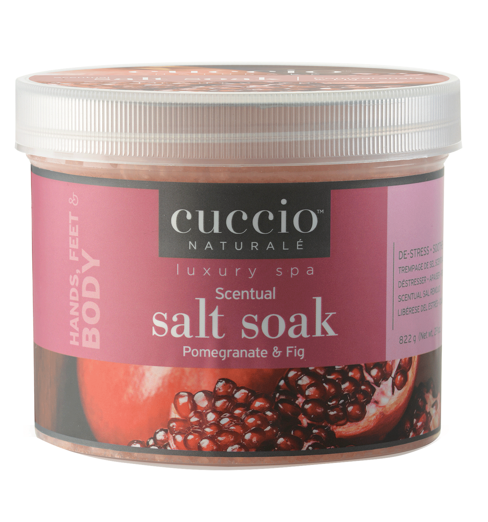 Le sel de trempage Cuccio Naturalé nettoie et hydrate la peau, c'est un soin relaxant et apaisant. Idéal pour le trempage en manucure, pédicure ou pour le bain. Ajouter le sel dans de l'eau tiède et profiter de ce moment de détente. La grenade est l’un des fruits les plus riches en antioxydant, vitamines B5 et C et la figue apporte minéraux et oligo-éléments. Différentes senteurs pour le sel de trempage Cuccio Naturalé (Grenade & Figue - Lait & Miel - Artisan Shea & Vetiver)