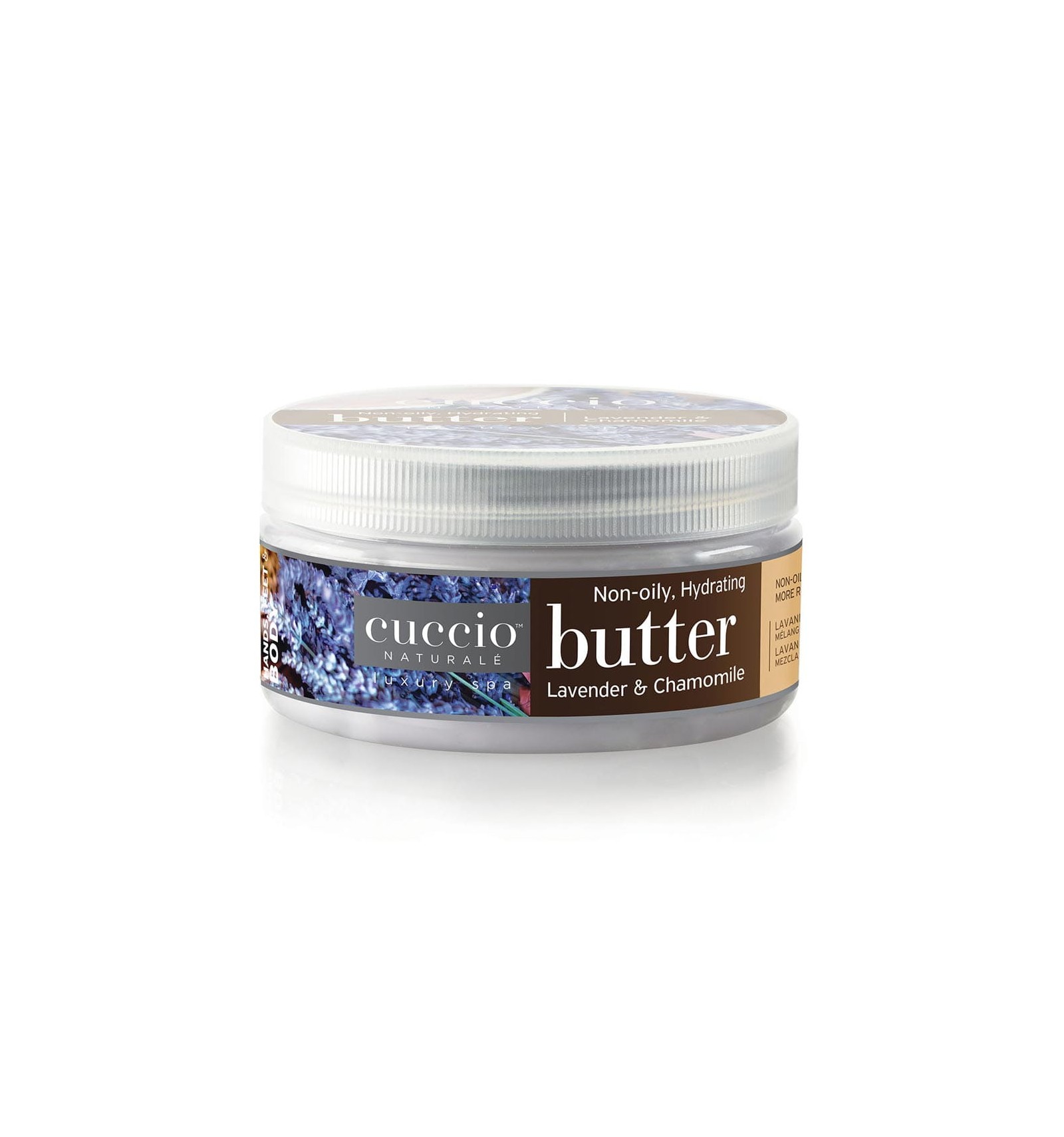 Le beurre Cuccio Naturalé hydrate et nourrit profondément tout type de peau. Grâce à sa recette unique et onctueuse le beurre Cuccio Naturalé révèle toute son efficacité.Un soin intensément hydratant qui laisse une peau lisse et soyeuse. Le beurre s'applique au quotidien sur le corps, les mains et les pieds. Sa formule unique et brevetée pénètre dans la peau pendant 2 heures et l'hydrate en continue pendant 24 heures. Une peau éclatante et apaisée.La lavande est rafraichissante et la camomille est parfaite pour apaiser et hydrater la peau. Le beurre Cuccio Naturalé existe en différentes senteurs pour varier les sensations. (Grenade & Figue - Vanille & Sucre - Lait & Miel - Lavande & Camomille - Noix de coco & Gingembre blanc - Citron & Aloe vera).