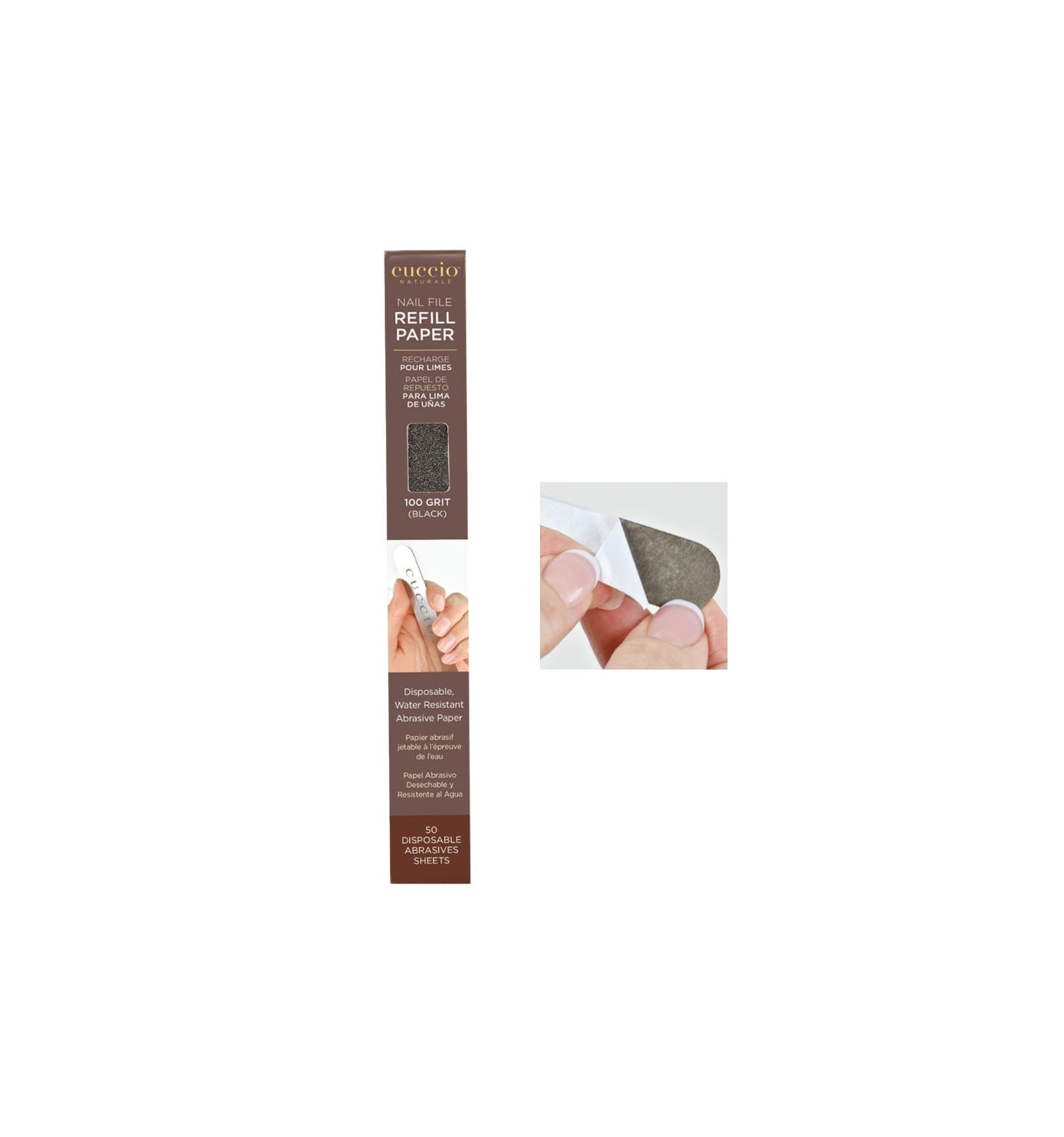 La recharge de papier abrasif s'utilise avec la lime à ongles Cuccio Naturalé, différents grains sont disponibles pour un soin adapté à chaque besoin. Idéal pour un soin manucure de qualité ! Le papier abrasif se colle sur la lime et peut être utilisé à la fois sec et humide. Il est jetable et interchangeable. La lime en acier inoxydable peut être stérilisée.