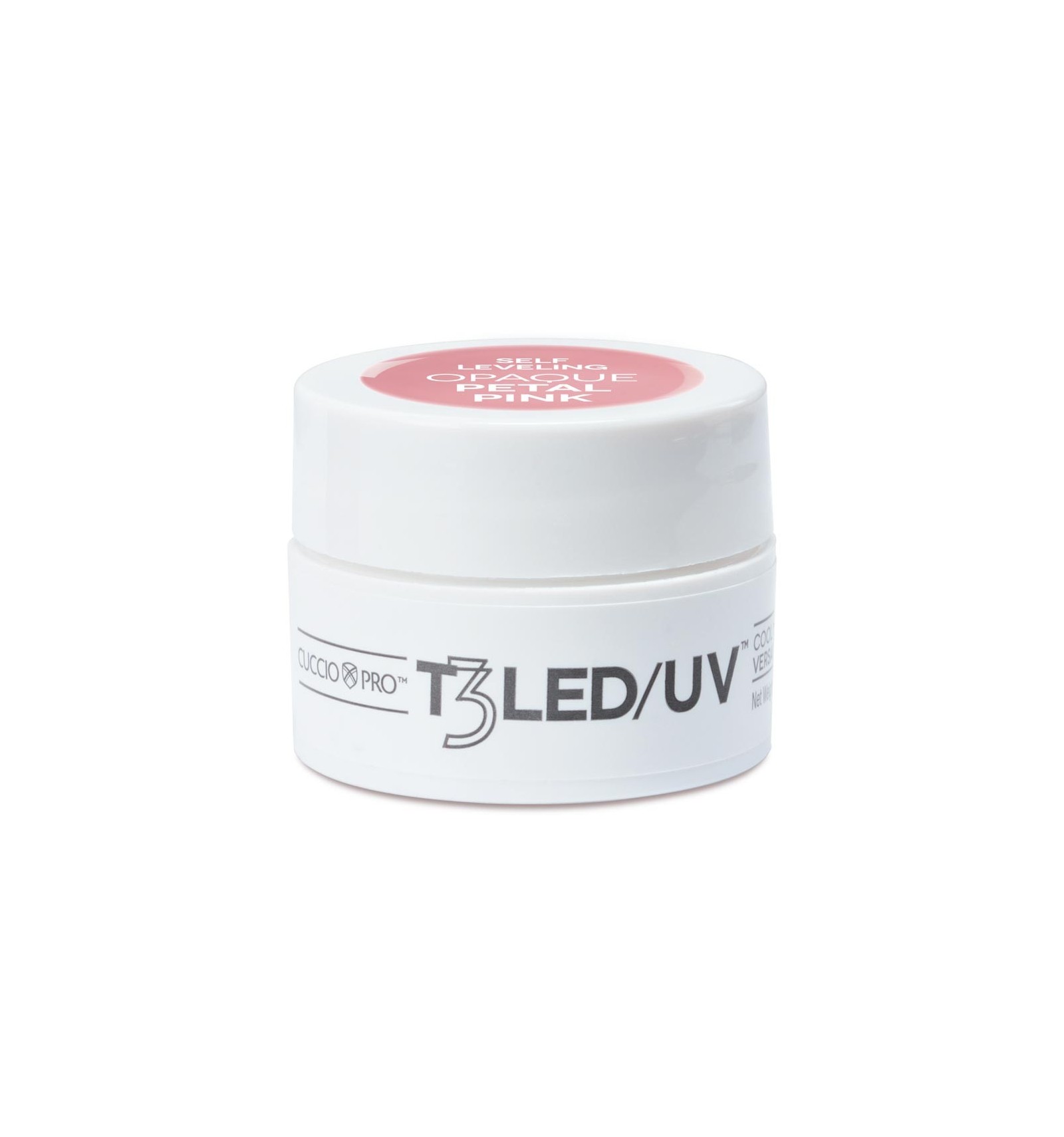 Gel T3 UV / GEL Controlled Leveling Opaque Petal Pink - 7 grs Formule idéale pour les personnes qui aiment les gels durs traditionnels mais qui bénéficient de la technologie de polymérisation à froid. Rapide pour l'application, durci en 1 minutes dans la lampe à LED. Réduit le temps de travail jusqu'à 80% par rapport aux gels UV traditionnels. Avantages du gel T3 LED : La flexibilité et la viscosité donnent plus de contrôle sur l'application. La possibilité d'appliquer sur tous les ongles avant le durcissement, contrairement à d'autres gels durs qui coulent ou se déforment. séchable en LED et UV. Très durable et flexible, extrêmement adhésif. Il peut être utilisé pour des extensions, la construction et la décoration. Brillant, sans jaunissement, 100% sans odeur. Compatible avec les vernis semi-permanent Veneer Cuccio (peut être mélangé avec n'importe quelle couleur de semi Cuccio Veneer). Viscosité : Épais