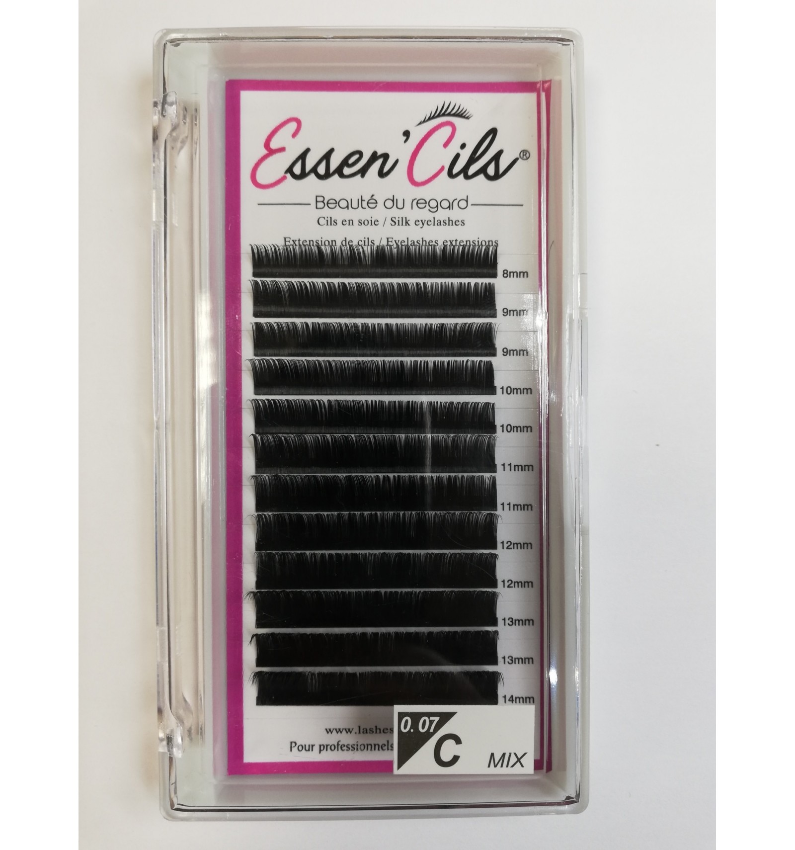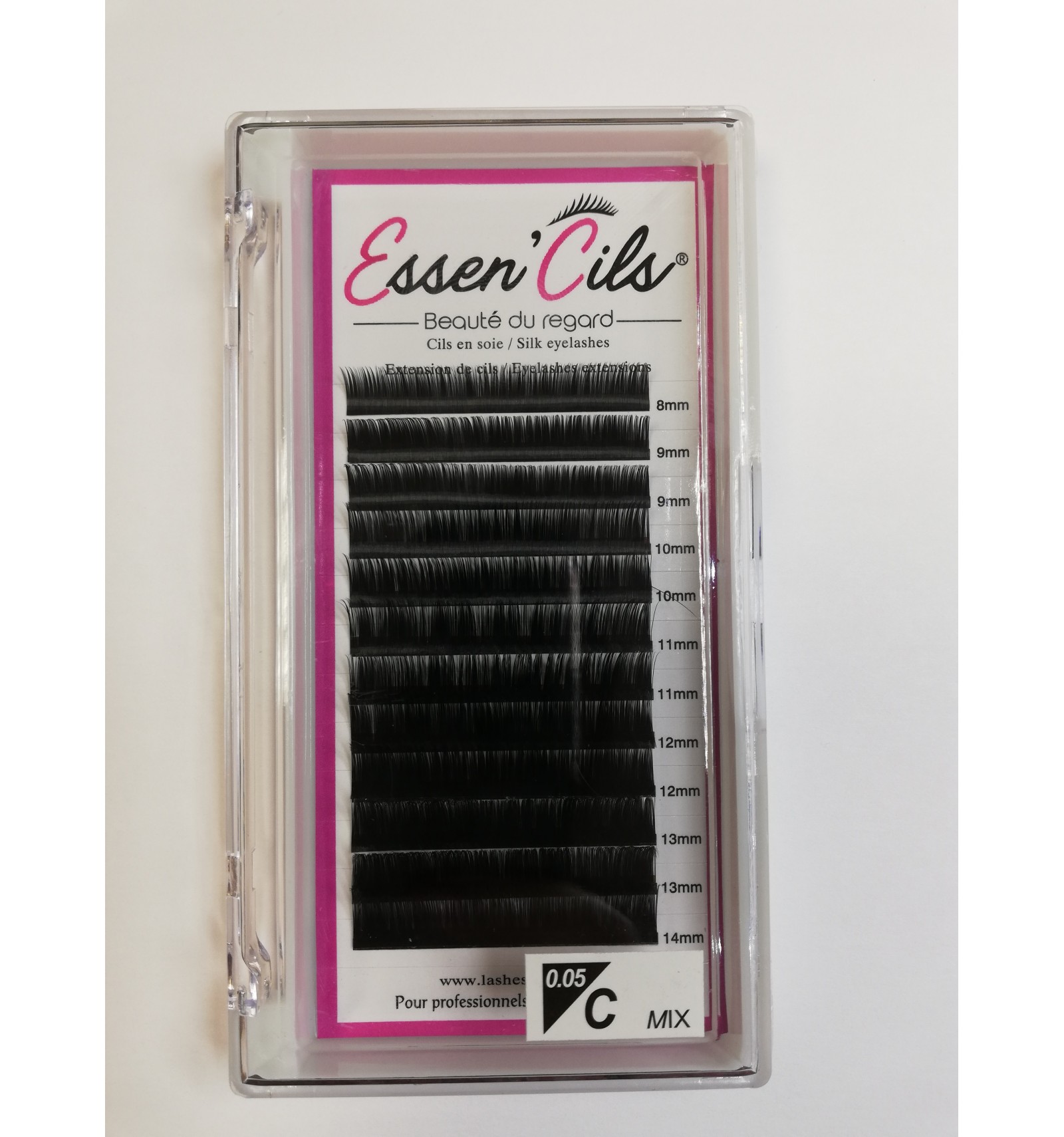Boite de 12 Bandes de cils MIX de 8 a 14 mm Courbure en C Epaisseur 3 tailles disponibles 0.05 ou 0.07 ou 0.10