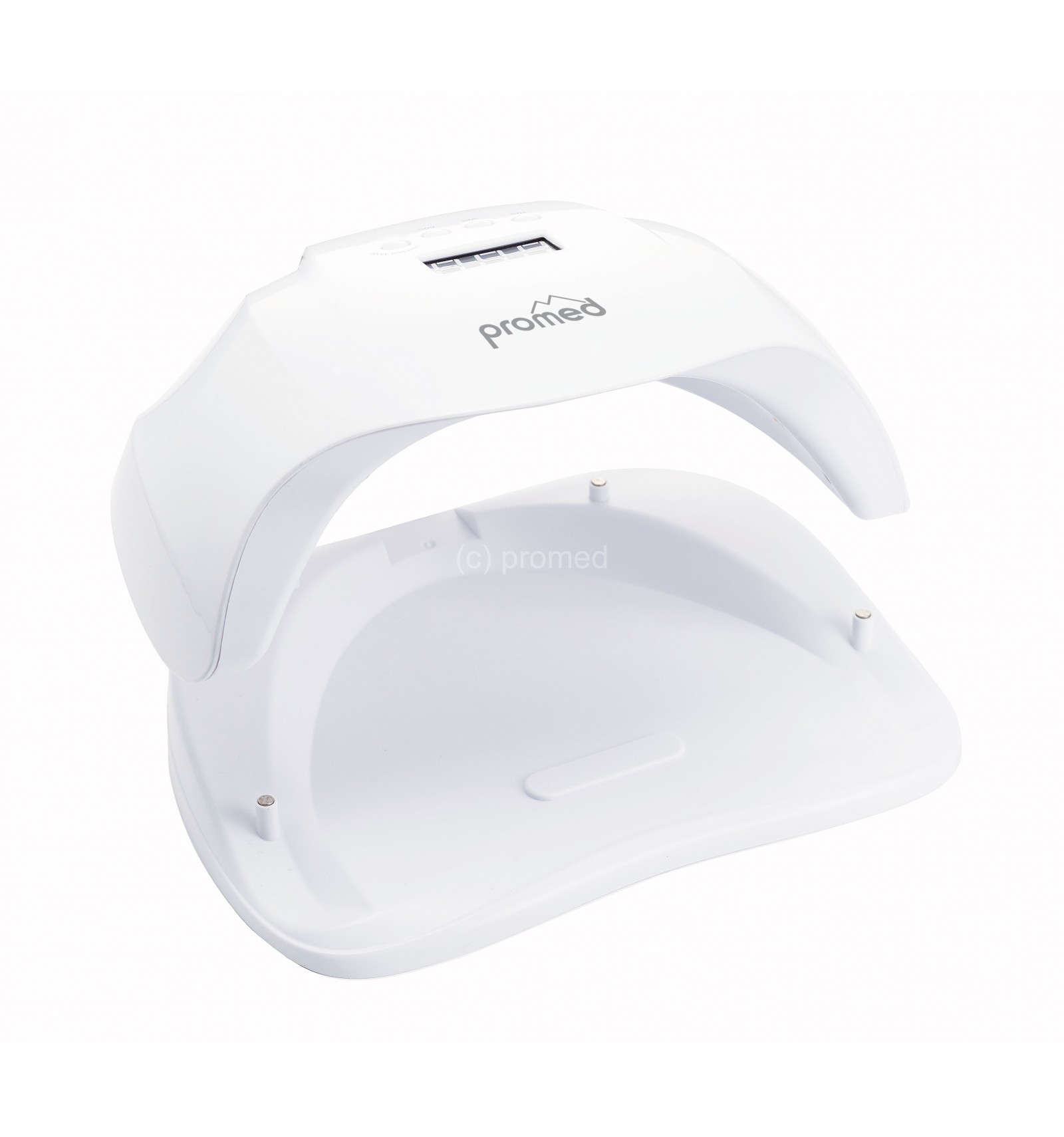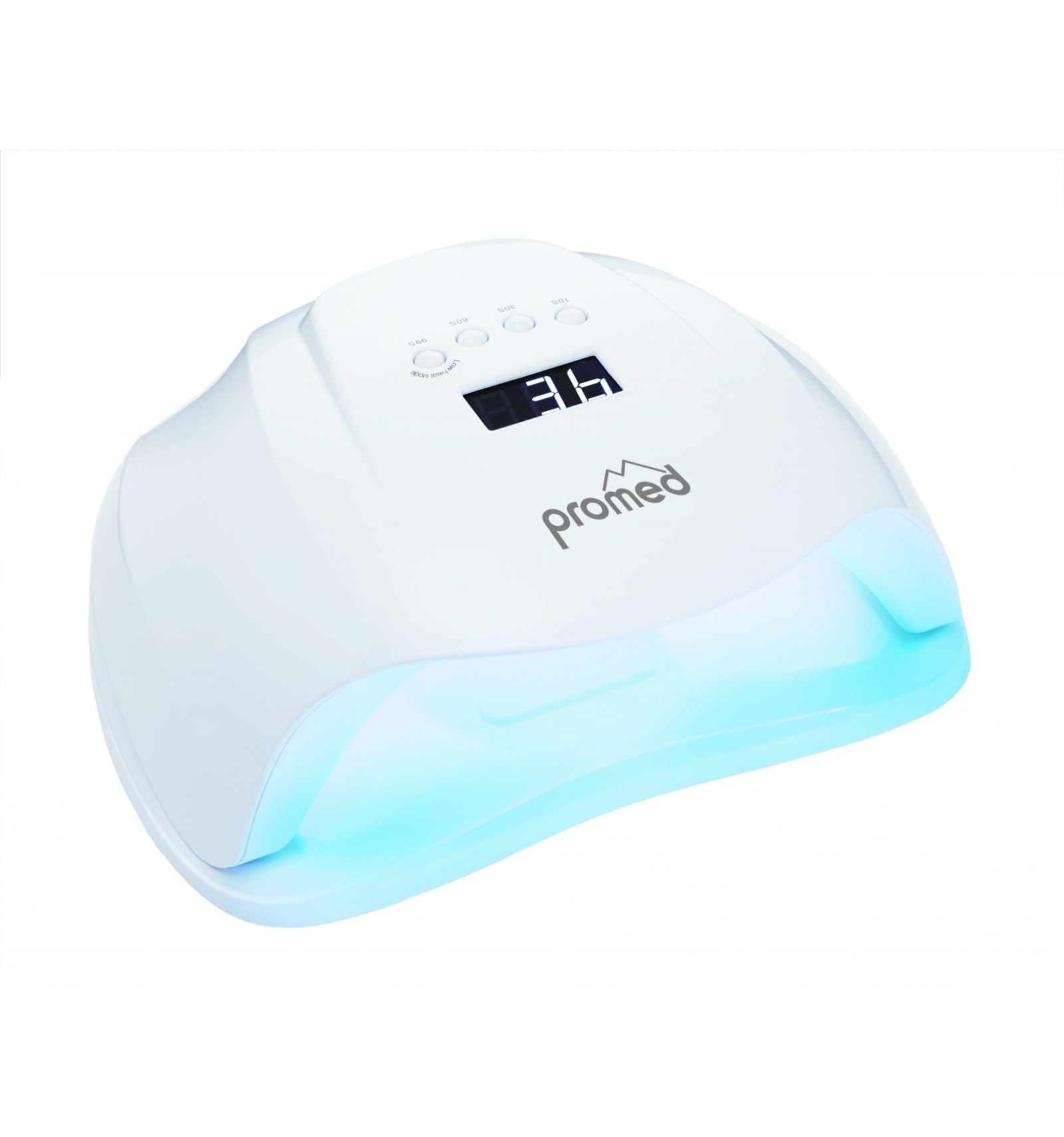 Lampe nouvelle génération PROMED Puissance LED Max: 54 Watts Reglable en 54/48W ou en mode sensible ( voir manuel d'utilisation ) Timer de 10, 30 et 60 secondes. Mode sensible de 99 secondes: ce mode commence à basse puissance et augmente progressivement pour réduire le développement de chaleur en ayant une polymérisation optimale du gel. Afficheur digital blanc du temps restant ou écoulé. Allumage automatique en passant la main et affichage du temps. 36 LEDs tous spectres Fond amovible magnétique. Durabilité d'environ 50000 heures. Finition: Blanc Brillant. Mode d'emploi fourni et a lire