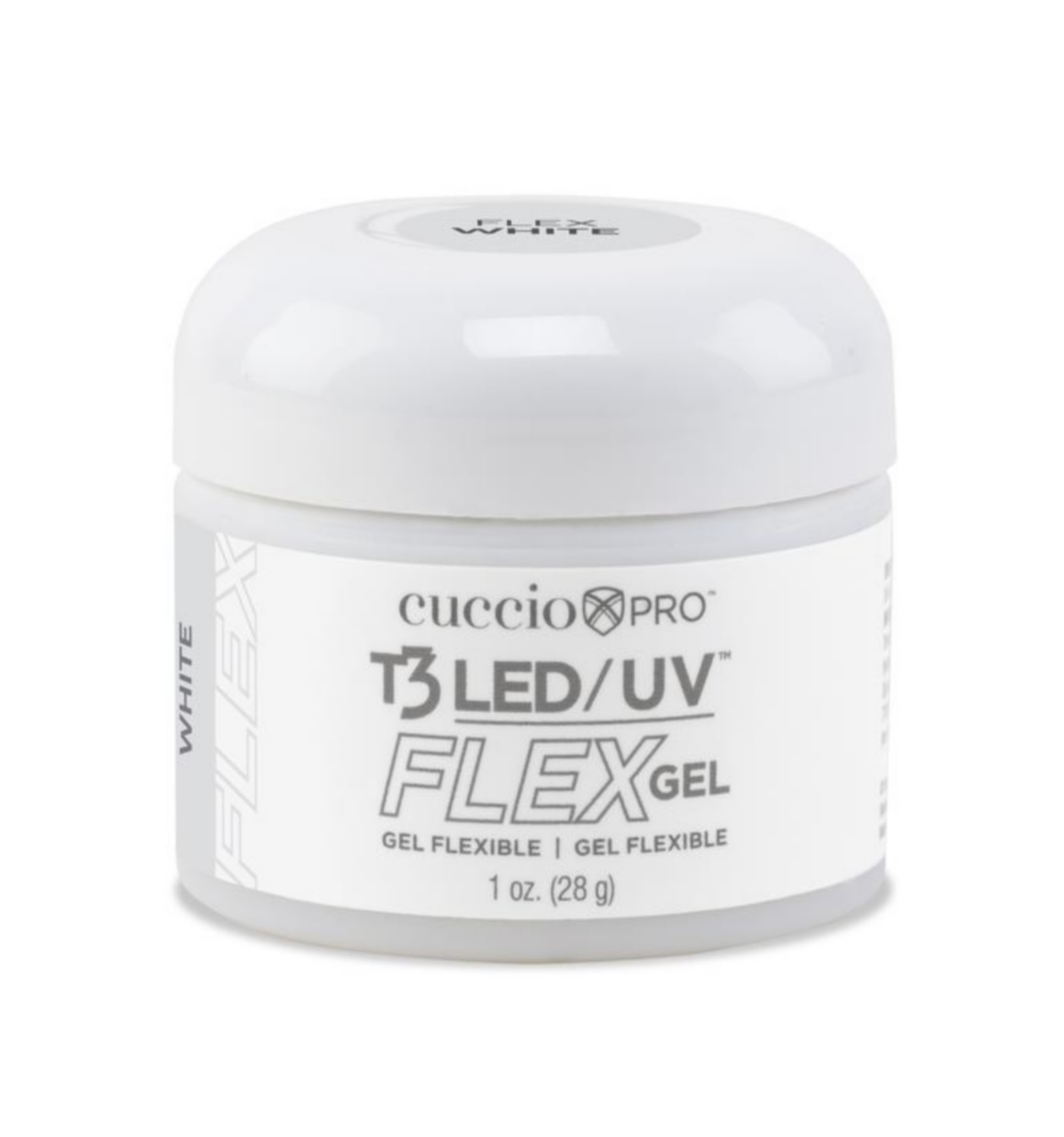 Gel Flex Cuccio white (blanc) - 28 gr Technologie de pointe dans l'application des ongles qui ajoute de la flexibilité et de la durabilité aux ongles naturels ainsi que pour la construction d'extensions d'ongles; Ce gel flex se situe entre les gels contrôlés (épais) et les gels autonivelants.