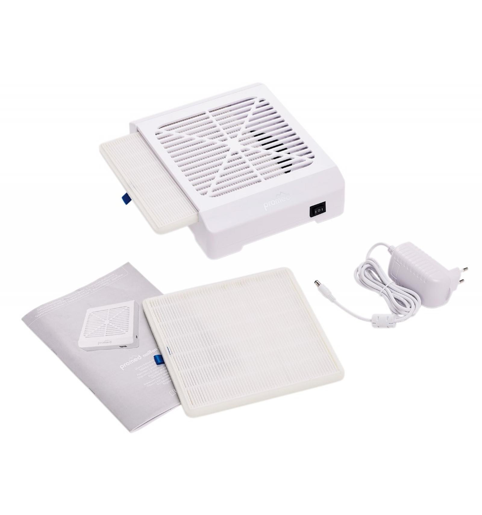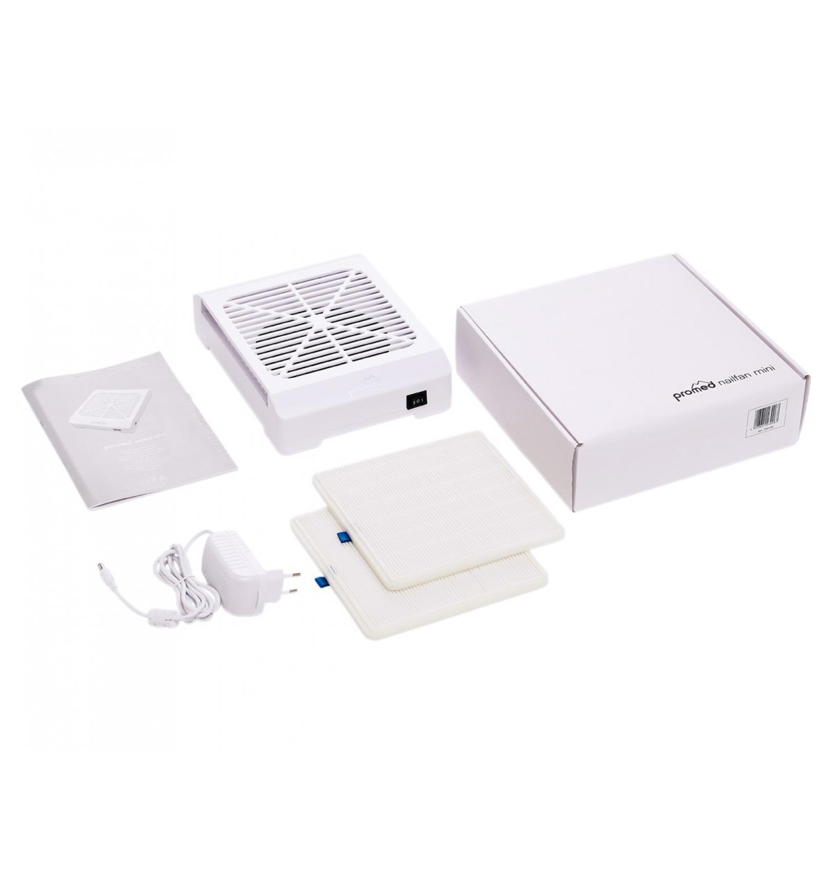 Le paquet contient:1x Nailfan Mini1x filtre dans l'appareil1x Filtre supplémentaire 1x adaptateur secteur1x manuel d'utilisationDétails techniques:Type d'appareil: extraction de la poussière sur la tableAlimentation: 100 - 240 VAC, 50/60 Hz 0,6 A, 12 V / 1,5 A secVentilateur:- Niveau 1: 3 000 tr / min / 24 W- Niveau 2: 4 500 tr / min / 36 WDimensions (L x P x H): 240 x 185 x 60 mmPoids: environ 570 g2 niveaux d'aspiration silencieux réglables