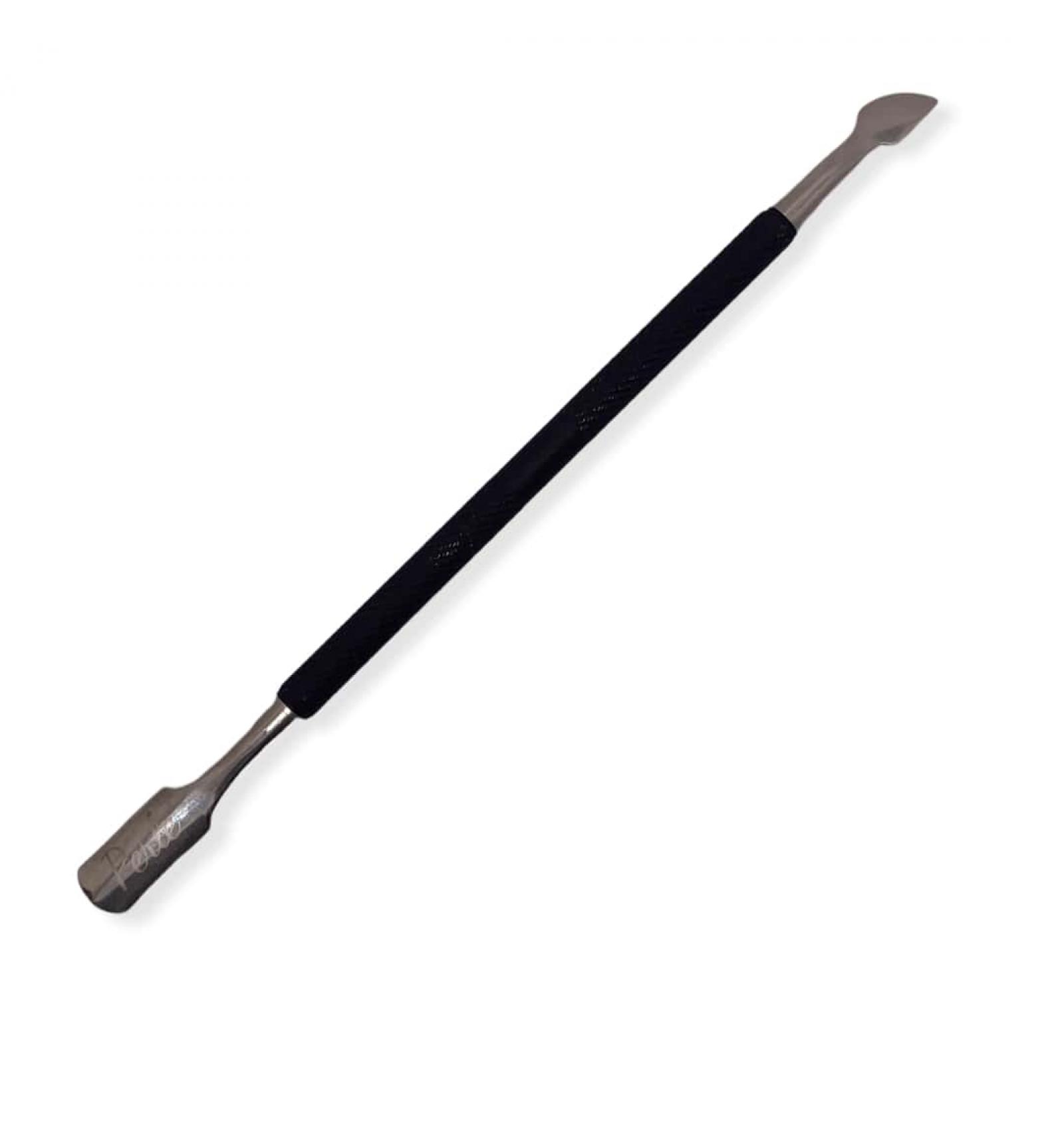 Repousse cuticule en acier Design ergonomique pour une facilité à l'utilisation.D’un côté il repousse les cuticules et et de l'autre il permet de nettoyer efficacement les saletés qui peuvent se coincer sous les ongles