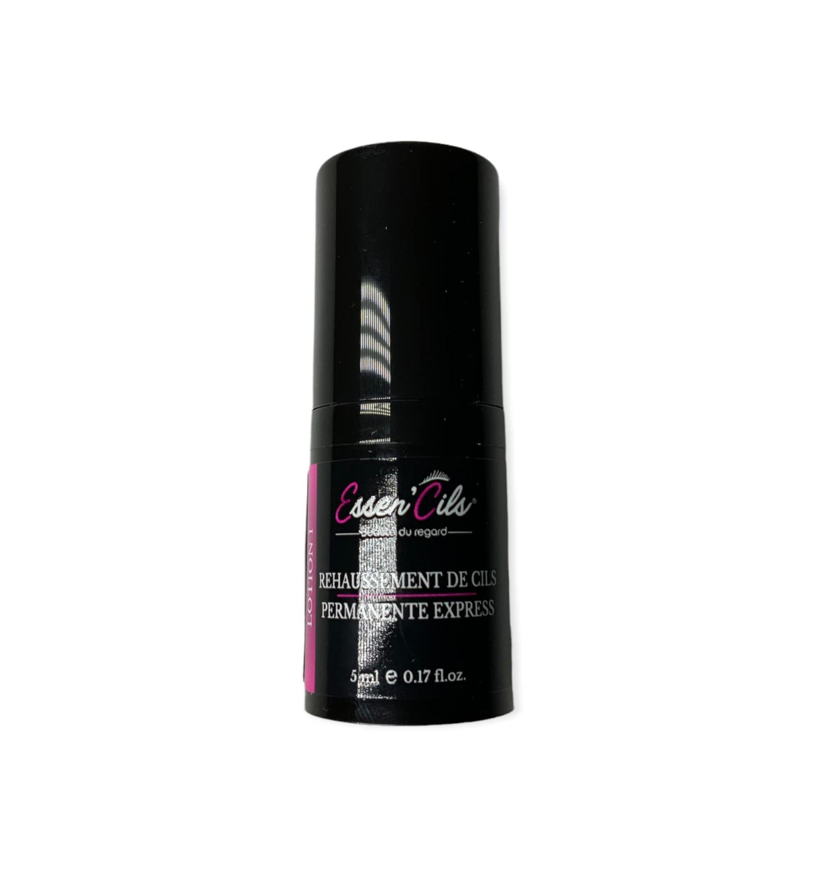 Lotion permanente express Essen'cils pour rehaussement de cils.Permet de recourber les cils naturels depuis la racine.Temps de pause : - Cils fins : 4-5 minutes - Cils moyens : 5-6 minutes - Cils épais : 6-7 minutesDurée de conservation : 36 mois, après ouverture jusquà 6 mois.Tenir hors de portée des enfants Ne pas ingérer ou mettre dans les yeuxEviter tout contact avec les yeuxRincez immédiatement les yeux si le produit entre en contact avec les yeuxFlacon AIRLESS 5 ML (approximativement jusqu'à 25 clientes suivant la quantité de produit appliqué)Pour un usage professionnel seulement