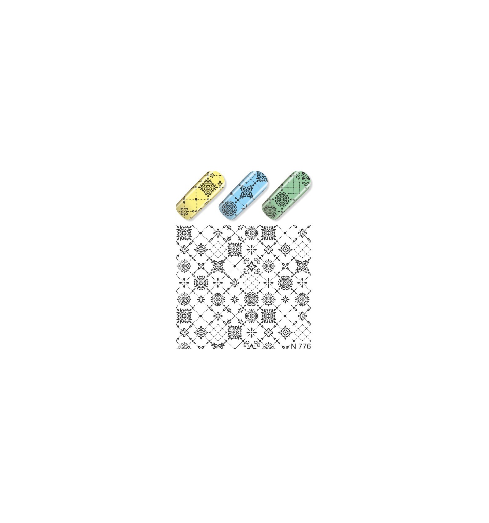 Mode d'emploi : 1. Appliquez une couche de vernis à ongles et attendez qu'il sèche. 2. Découpez le motif sur la feuille. 3. Trempez le motif dans l'eau pendant environ 3 secondes. 4. Pour enlever toute trace d'eau, tamponnez le motif sur du papier absorbant. 5. Posez le sur votre ongle délicatement. 6. Appliquez une couche de top-coat transparent.