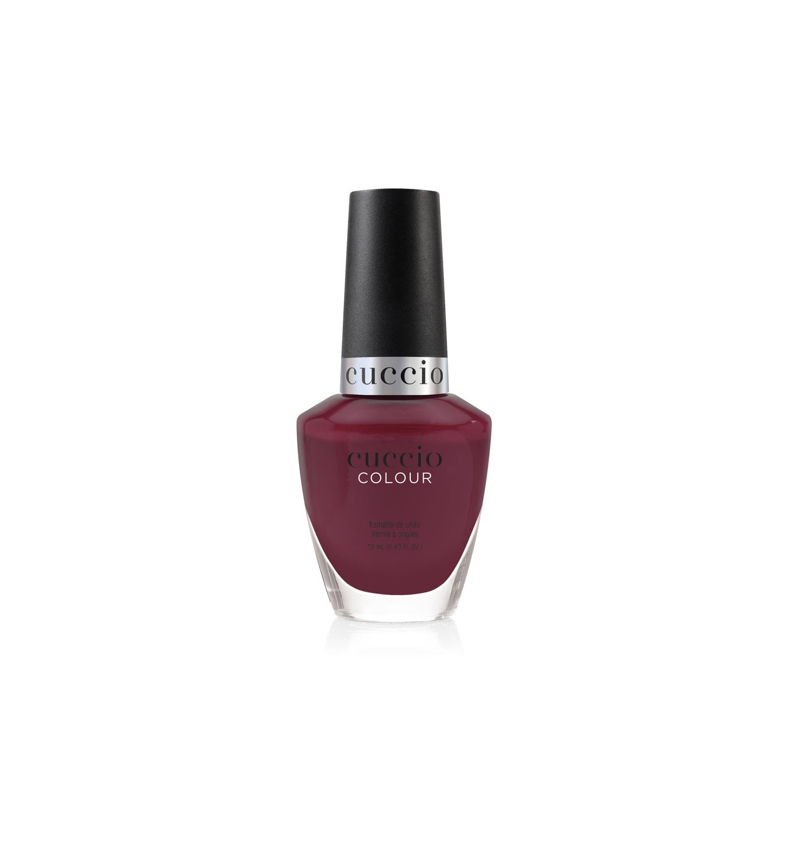 Les vernis à ongles Cuccio ne contiennent pas de toluène, de formaldéhyde, ni DBP. Il est suggéré d'appliquer la base vernis Cuccio, 2 couches de vernis de couleur et une couche de finition Cuccio, en laissant sécher 1 minute entre chaque couche. La couleur peut différer selon la résolution de l'écran.